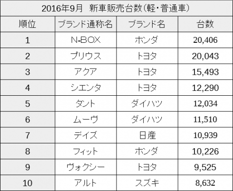 ◆9月新車販売台数(軽・普通車)
